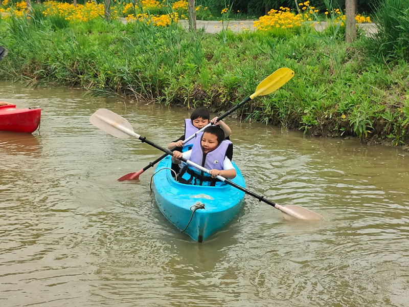 濕地皮劃艇項(xiàng)目將上午的活動(dòng)推向高潮。大家躍上皮劃艇,在粼粼波光中揮槳前行,或你追我趕,上演一場(chǎng)酣暢淋漓的水上競(jìng)速;或悠然自得,沉醉于濕地的如畫風(fēng)光。水面上歡笑聲與加油聲此起彼伏,奏響了活力四溢的夏日樂章。