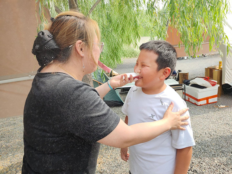 “面粉接力大作戰(zhàn)”堪稱對(duì)團(tuán)隊(duì)協(xié)作與默契的雙重考驗(yàn)。隊(duì)員們需借助撲克牌,小心翼翼地進(jìn)行面粉傳遞。為守護(hù)這珍貴的“白色接力棒”,大家各顯神通:屏息凝神者有之,放緩動(dòng)作者有之。然而過程仍是狀況頻出:一不留神,面粉便沾了滿臉,瞬間化身“白胡子老爺爺”,引得全場(chǎng)忍俊不禁、捧腹大笑。就在這此起彼伏的歡笑聲中,無論大人還是孩子,都全情投入、緊密配合,為了團(tuán)隊(duì)的共同目標(biāo)傾盡全力。