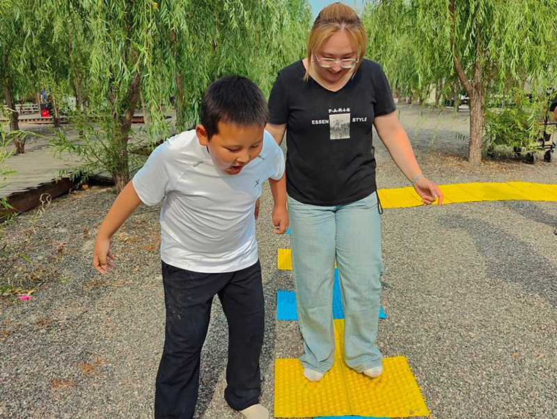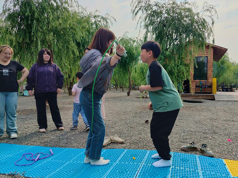 最后的指壓板大戰(zhàn)搖身變?yōu)橐粓?chǎng)“童年闖關(guān)大挑戰(zhàn)”。大家赤足踏上指壓板,挑戰(zhàn)跳繩、跳格子等經(jīng)典童年游戲任務(wù)。腳底雖傳來陣陣酸爽刺激,臉上卻始終綻放著燦爛笑容,咬牙堅(jiān)持。團(tuán)隊(duì)成員們?cè)谝慌詩^力吶喊助威,互相鼓舞打氣,齊心協(xié)力共闖難關(guān),在歡笑與互助中凝聚起強(qiáng)大的團(tuán)隊(duì)力量,將活動(dòng)氛圍推向頂點(diǎn)。