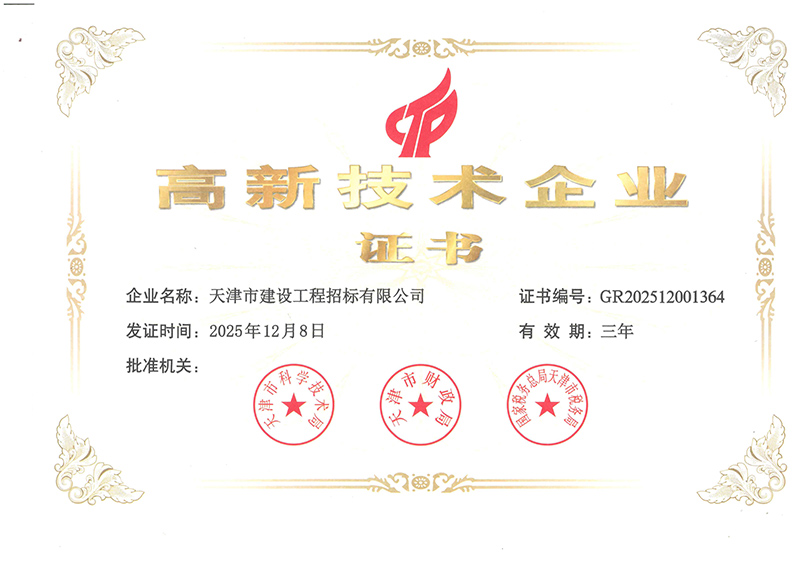 近日,經(jīng)天津市科學技術局、財政局、稅務局聯(lián)合評審,天津咨詢所屬天津市建設工程招標有限公司成功通過高新技術企業(yè)認證,正式躋身國家高新技術企業(yè)行列。此前,天津咨詢所屬另外一家“高新技術企業(yè)”天津市泛亞工程咨詢有限公司,也于2025年12月順利通過復審。